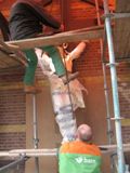 Op 24 maart 2009 is het nieuwe houten kruis dat zo’n 200 kg weegt aan de muur van de kerk bevestigd waarna het gietijzeren corpus dat ook nog eens 200 kg weegt met behulp van een takel op het kruis is bevestigd. Het nieuwe afdakje is met koper waterdicht afgewerkt zodat het calvariekruis dat recht in de zichtlijn vanaf het Annagebouw hangt nu zonder probleem 200 jaar oud kan worden